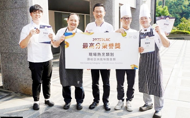 大葉大學餐旅管理學系、烘焙暨飲料調製學士學位學程再傳捷報!在世界廚師聯合會(WACS)認證的2025 TCAC台灣國際廚藝美食挑戰賽,榮獲2金1銅與最高分榮譽,充分展現師徒傳承、實作學習的教學成果。